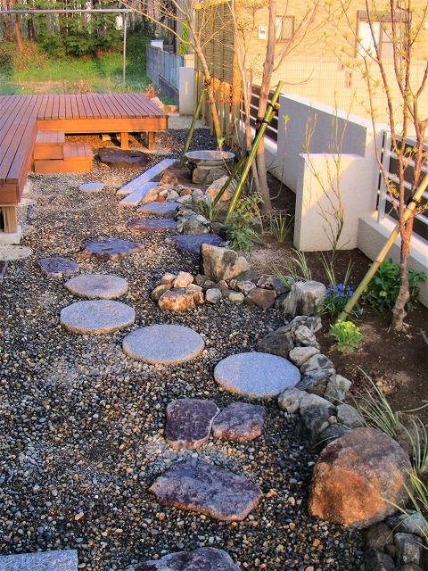 水鉢(つくばい)を中心につくる石を使った和風の庭【茨城県つくば市】